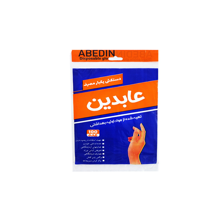 دستکش یکبار مصرف نایلونی بسته 100 عددی عابدین